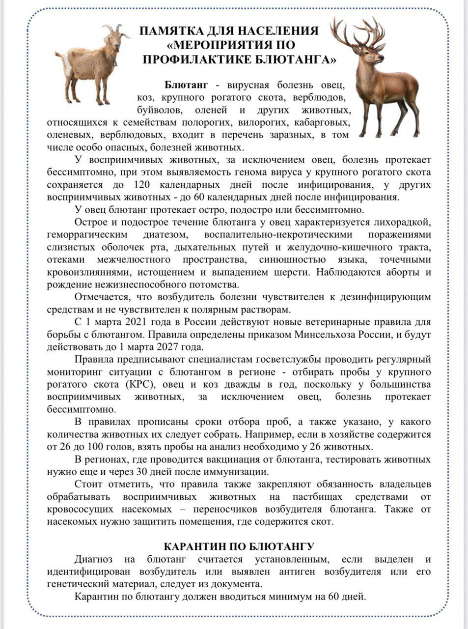 Памятка для населения "Мероприятия по профилактике блютанга"