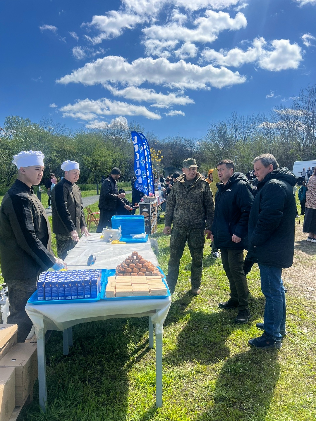 Все гости и участники мероприятия могли отведать вкусную кашу из полевой кухни и выпить горячий чай со сладостями.